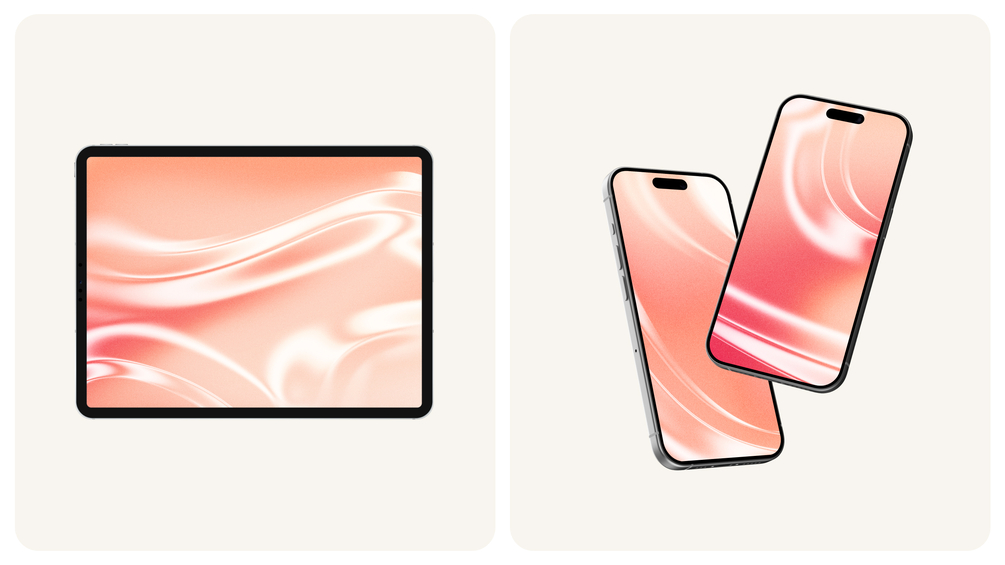 This collection of 12 high-resolution images blends blush tones, coral gradients, and silky reflections into tactile, calming compositions—perfect for your phone, tablet or desktop.