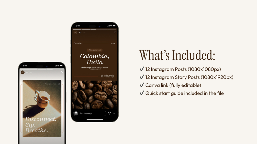 This kit includes 10 fully editable Canva templates plus a quick guide PDF with all the instructions you need. Perfect for Instagram posts, stories, and reels. No design skills required!